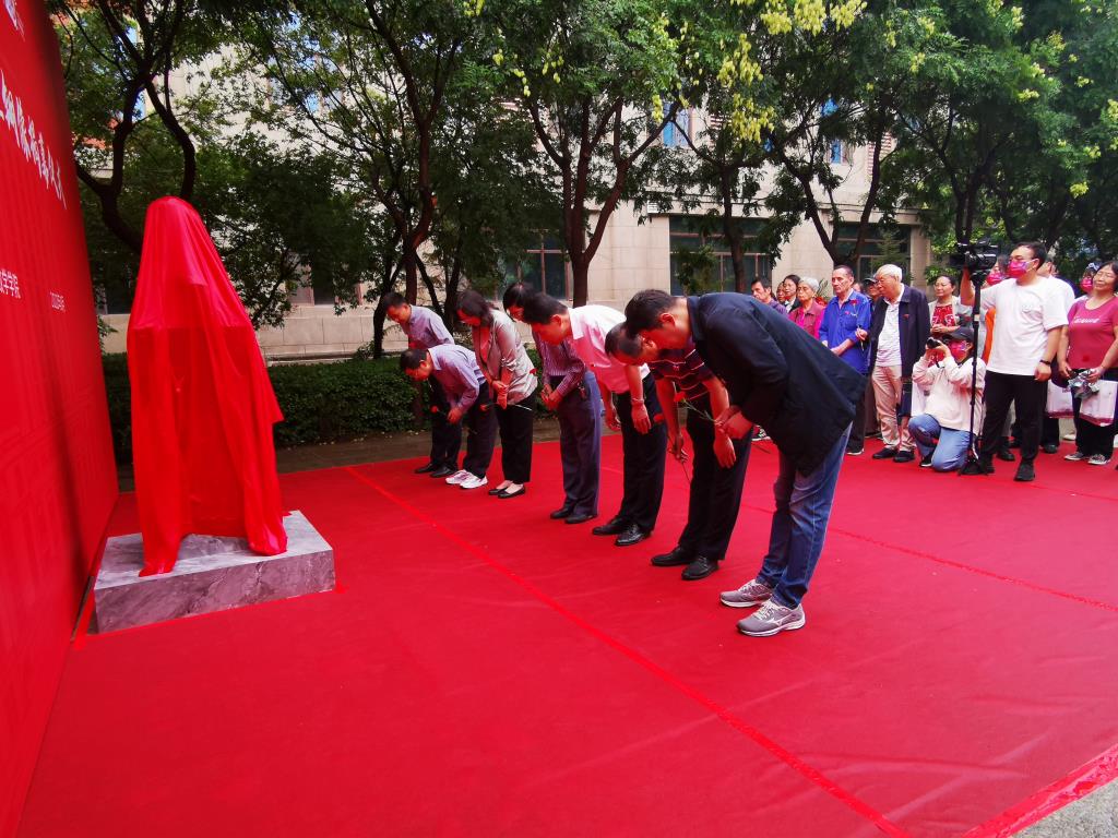 随后,与会领导与常师贞先生家人共同为常师贞先生铜像揭幕,2位家人代表、2位师生代表为常师贞先生铜像敬献花篮,其他到场嘉宾敬献鲜花,众人向常师贞先生铜像三鞠躬,并合影留念。