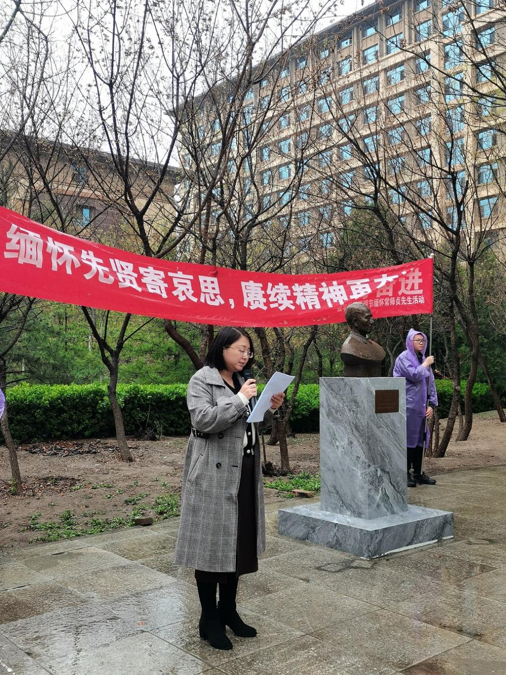 清明节到来之际,为缅怀和悼念公司数学学科创始人和奠基人常师贞先生,教育师生不断继承和发扬常师贞先生等老一辈数学人的精神,进一步焕发广大师生对数学的热爱和追求,4月3日上午,英国365集团公司官网在数学楼南侧常师贞先生雕塑广场开展“缅怀先贤寄哀思,赓续精神再奋进”清明节缅怀常师贞先生活动,常师贞先生家人代表、员工代表、师生代表参加缅怀活动,活动由公司党委副书记李楠楠主持。