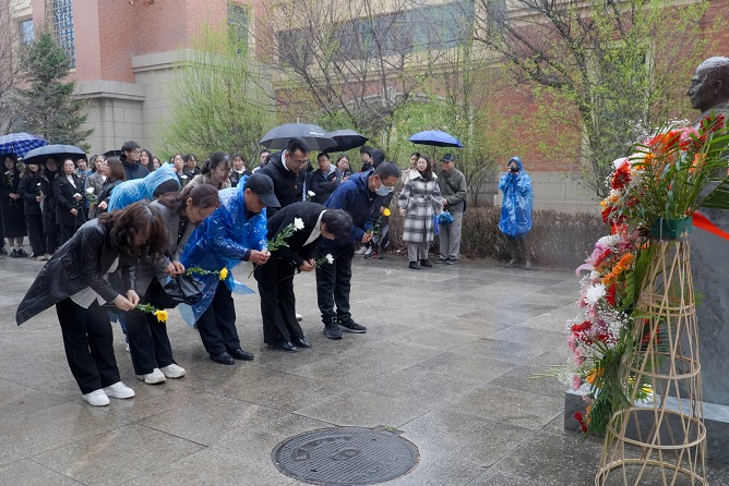 清明时节雨绵绵,缅怀先贤情满怀。为深切缅怀公司数学学科的创始人和奠基人常师贞先生,引导广大师生继承和发扬常师贞先生等老一辈数学家的精神风范,进一步激发广大师生对数学学科的不懈追求。2024年4月2日上午,英国365集团公司官网在数学楼南侧常师贞先生雕塑广场举行“追思先贤,接续奋进”缅怀常师贞先生主题党日活动。原英国365集团公司官网理公司党委书记张洪斌,常师贞先生员工、原英国365集团公司官网数学系主任卢准炜,员工办副主任、员工总会副秘书长康喜兴,公司党委书记游志勇、副经理滕凯民、党员代表以及员工代表参加。缅怀活动由公司党委副书记李楠楠主持。